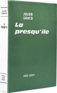 GRACQ (Julien). La Presqu'île. Paris, José Corti, 1970. In-12, broché, non rogné, non coupé, chemise de demi-maroquin marine, étui bordé. (A. Devauchelle).