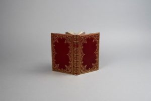RÉGNIER (Henri de). Les Rencontres de M. de Bréot. Paris, Société du Mercure de France, 1904. In-12, maroquin rouge, dentelle dorée, dos orné, doublure de veau crème, jeu de filets dorés en encadrement intérieur et motifs dorés avec fer à l'oiseau aux angles, gardes de moire, tranches dorées, non rogné, couverture et dos (E. & A. Maylander). Édition originale de cet ouvrage dédié à Gérard d'Houville, pseudonyme de Marie de Régnier. Un des 3 rares exemplaires sur chine. Très bel exemplaire dans une riche reliure doublée à dentelle. De la bibliothèque littéraire Charles Hayoit (IV, 2001, n°884).