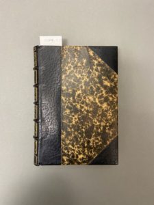 RÉGNIER (Henri de). Sujets et paysages. Paris, Société du Mercure de France, 1906. In-12, demi-maroquin noir avec coins, dos richement orné dans les caissons d'un décor de feuillages dorés autour d'un bouton de rose mosaïqué orange, tête dorée, non rogné, couverture et dos (Huser). Édition originale. Un des 49 exemplaires sur hollande. Bel exemplaire, bien relié, enrichi d'une lettre autographe de l'auteur, destinataire inconnu (2 pages in-12). De la bibliothèque littéraire Charles Hayoit (IV, 2001, n°886).