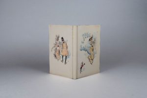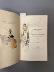 SCIAMA (André). Paris en sonnets. Paris, L. Conquet, 1897. In-8, bradel parchemin blanc orné sur chaque plat d’une grande aquarelle originale, non rogné, couverture, jaquette, étui (E. Carayon). 29 compositions en couleurs de Henriot. Tirage à 300 exemplaires non mis dans le commerce. Très fraîche reliure ornée d’aquarelles originales de Henriot.
