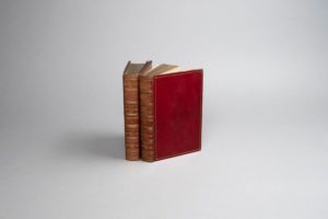 SÉGUR (vicomte J. A de). Les Femmes, leur condition et leur influence dans l'ordre social chez différens peuples anciens et modernes. Nouvelle édition, augmentée de l'influence des femmes sous l'Empire et de notes historiques, par Ch. N***. Paris, Raymond, 1820. 2 volumes in-8, veau glacé rouge, filet doré et roulettes à froid en encadrement, plaque losangée à froid à décor irradiant au centre, dos orné, roulette intérieure, tranches dorées (Reliure de l'époque). Édition ornée de 2 figures gravées sur cuivre d'après Chasselat. Ravissante reliure romantique. Dos passé.