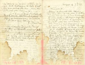 Eugène BOUDIN (1824-1898). L.A.S., Quimper 14 septembre 1857, à ses parents ; 3 pages 24 demie in-8° (mouillures) Voyage en Bretagne. Il est heureux de savoir tout le monde en bonne santé. Quant à lui, il se porte bien «malgré de copieuses averses, des courses à pied ou en charrette à travers le pays ; le souci continuel de trouver du nouveau, d'assister à tous les pardons, concours, noces & autres cérémonies habillées, de me caser tous ces détails dans la tête afin d'en tirer parti pour ma peinture»... Après d'insupportables chaleurs, il est victime du mauvais temps, mais ne se décourage pas. Il avait commencé des vues de Quimper, dont une commandée par un riche Anglais des environs, qui s'est depuis envolé, et qui lui avait fait une avance qu'il avait dépensée en collectionnant de beaux «costumes précieux du pays», mais il lui en faut encore plus, «sans cela je ne puis rien faire de complet». Or s'il ne «tire pas le canon d'assistance, comme dit papa, je vais me trouver assez embarrassé». Il demande à sa mère de lui expédier de l'argent afin de pouvoir rentrer au Havre : «je suis pressé de retourner à l'atelier achever & vendre mes bretonneries ébauchées, ce qui vaudra mieux ce qui vaudra mieux que de rester ici à attendre le résultat de méchantes peintures»... Il partira dès réception de la réponse afin d'être au Havre à la fin du mois, donne les prixd u gibier sur les marchés, et embrasse tout le monde...