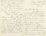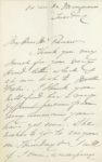Mary CASSATT (1841-1926). 9 L.A.S., [vers 1882-1893], à Camille Pissarro ; 21 pages in-8° et 2 pages in-12 ; en anglais Belle correspondance de Mary Cassatt à Pissarro. Château de Bachivillers [été 1882 ?]. Ils sont presque voisins, car elle séjourne dans ce château à 6 km de Chaumont : elle espère qu'il viendra les voir et passer la nuit. Elle s'intéresse à l'exposition de Londres, mais craint qu'il n'y ait pas beaucoup d'encouragements pour eux à Londres. Les Durand-Ruel ont envoyé un portfolio de ses travaux à Dowdeswell, mais elle n'a aucun retour. Elle espère exposer à New-York à l'automne, et si cela se fait elle n'aurait rien à envoyer à Londres... Arrivée depuis deux jours elle n'a pas commencé à peindre, mais elle va s'y mettre, bien qu'elle craigne de ne pas pouvoir trouver de modèles. Son père est souffrant... -13 avenue Trudaine. Elle lui a télégraphié à propos de la maison de campagne à Auvers, car ils ont dû abandonner celle de Marly à cause de son affreuse propriétaire qui s'est outrageusement comportée à leur égard. Ils se retrouvent sans rien, et elle s'excuse de l'importuner à ce propos... - Ils ont finalement loué la maison à côté du “Coeur Volant”... - Sunday. Elle demande à Pissarro de bien vouloir recevoir une amie de Florence, qui vient la consulter à propos de ses études d'art et est une grande admiratrice de Pissarro, pour lui donner son avis et ses conseils. Son père est très malade et elle craint le pire... 10 rue de Marignan 27 novembre [1889 ?]. Après un plaisant été à Septeuil, elle s'est remise au travail, bien qu'elle n'ait pas de nouvelles d'une exposition. Elle dessine et se dit fort contente de sa presse à imprimer qu'elle trouve très pratique et très agréable : «One ought to print all one's own plates, only it is too hard work !»... Elle a dit à Durand-Ruel de montrer à des connaissances à New York les dessins de Pissarro : «Durand-Ruel is doing very well in America». Elle a refusé de contribuer à la souscription pour Manet, car Eugène Manet [le frère] l'a assuré que cette souscription avait été ouverte pour empêcher le tableau, qu'un Américain convoitait, de quitter la France... Il est grand temps de refaire une exposition... Tuesday. Elle le remercie d'accepter si gentiment de rencontrer Miss Fahi, une jeune américaine qui viendra le visiter jeudi, et qu'elle accompagnera si elle le peut... Elle se réjouit de savoir que ses yeux vont mieux. -Thursday [1891 ?]. Elle lui demande s'il accepterait de prendre des élèves et si ceux-ci pourraient être logés à Éragny. Combien demanderait-il pour ces leçons ou plutôt ces «conseils» ?... Bachivillers 17 juin [1892]. Pissarro est en Angleterre ; quant à elle, après Florence, elle séjourne à Bachivillers pour les prochains mois. Elle a été engagée [avec la peintre Mary MacMonnies] pour exécuter une superbe décoration pour un des immeubles à Chicago pour la World Fair. Degas est hors de lui à l'idée que des femmes soient employées pour un tel travail : «he has handed me over to destruction» !... Elle espère que l'an prochain ils reprendront leur combat contre les graveurs (etchers)... Mme Manet [Berthe Morisot] expose ses peintures chez Boussod et Valladon, une très charmante collection... Etc. JOINT : une L.A.S. de Mme Cassatt mère, invitation pour le «breakfast» à Bachivillers [1892]. Provenance : Archives de Camille Pissarro (vente 21 novembre 1975, n° 9).