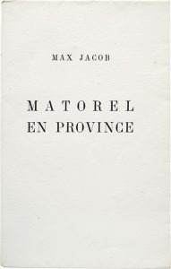 JACOB (Max). Matorel en Province. Paris, Vogel, 1921. In-8, broché, couverture rempliée, non rogné.