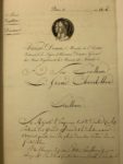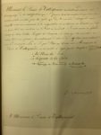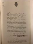 Charles-Maurice de TALLEYRAND (1754-1838). RECUEIL de 65 lettres et documents ; dans un fort volume in-folio., reliure ancienne maroquin rouge avec filets et fleurons dorés sur les plats, dos orné, coins et fermoir métalliques Bel ensemble de documents de Talleyrand, ou le concernant, notamment comme Prince de Bénévent. Sur le contreplat, grand ex-libris gravé à ses armes ; sur le contreplat inférieur, on a collé une aquarelle représentant les armes de Vice-chancelier. L.A.S. (minute) à Champagny (16 décembre 1807) ; 3 L.S. comme ministre des Relations extérieures : à Kopp (an VIII), à Moreau Saint-Méry et à Rivals (an XI). Lettres adressées à Talleyrand (la plupart L.S.), 1806-1835, par • V. Denon, • Joseph Bonaparte (l.a.s.), • Macdonald, • Daru, • Elisa Bonaparte, • Ferdinando IV de Naples (copie signée par le marquis di Circello), • Jard-Panvillier, • Marusi Tommasi, • comte de Prade l, • Vitrolles, • Dreux- Brézé, • Charles X, • Doude auville, • Aguesseau, • Fabricius, • Belanger (maire de Valençay), • comte de Bondy, • Lezay-Marnésia, • Maurocordato et les 3 membres de la Régence de Grèce (• Armansperg, • Heide ck, • Maurer), • Monseigneur de Quelen (copie)... Documents divers : copie des provisions de Grand Aumônier de France (1814) ; diplôme de grand croix de l'ordre royal de Carlos III ; imprimés et affiches ; manuscrits concernant la charge de Grand Chambellan ; invitations ; listes d'invités ; portrait gravé ; fac-similés... 2 manuscrits italiens concernant les biens ecclésiastiques et leurs revenus dans la principauté de Bénévent, notamment ceux dépendant du monastère de Santa Sofia ; plan gravé de la Citta di Benevento. Plus 2 cartons d'invitation (1878) et un menu de déjeuner à Sagan (1881).