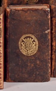 [SATIRE MÉNIPÉE]. Satyre Menippée de la vertu du Catholicon d'Espagne ; et de la tenuë des Estats de Paris. A laquelle est adjousté un Discours sur l'interpretation du mot de Higuiero d'Infierno [...] Plus le Regret sur la mort de l'Asne Ligueur d'une Damoiselle, qui mourut durant le Siege de Paris [...]. À Ratisbonne, Chez Mathias Kerner, 1664. Grand in-16, veau, armoiries dorées au centre des plats, dos à nerfs orné (reliure de l'époque) PREMIÈRE ÉDITION ELZÉVIRIENNE publiée en 1664. Trois planches gravées, dont deux portraits et une repliée représentant «la Procession de la Ligue». Quelques restaurations à la reliure. Willems,2007 ; Brunet, V, 145 («Jolie édition»). EXEMPLAIRE AUX ARMES de François BRUNET de MONTFERRAND, président de la Chambre des comptes de Paris (1646-1696). «Grand bibliophile [...] il faisait relier somptueusement la plupart de ses volumes» (O. H. R., 1743).