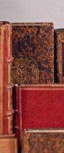 SCARRON (Paul). Le Romant comique. A Paris [Amsterdam, Abraham Wolfgang], 1668. 2 parties en un volume in-12, veau, armoiries dorées au centre, dos à nerf orné, non rogné (reliure du XVIIIe s.) Un titre-frontispice gravé par Jan VEENHUYSEN. Galeries de vers ; restaurations au dernier feuillet. Exemplaire remboité dans une reliure aux armes de Marguerite-Delphine de Valbelle Tourve s (1705-1784).