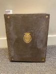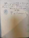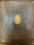 [BORDEAUX]. DROUYN (Léo). Bordeaux vers 1450. Description topographique. Bordeaux, Imprimerie G. Gounouilhou, 1874. In-4°, maroquin gris souris, petit fleuron doré aux angles, armoiries au centre du premier, dos à nerfs (reliure fin XIXe s.). L'ouvrage porte en pré-titre : «Archives municipales de Bordeaux». Quelques planches dont une en frontispice, bois dans le texte et un grand «Plan de Bordeaux, vers 1450» replié in fine. ENVOI du maire de Bordeaux avec timbre humide de la ville en page de garde : «Offert, au nom de la Ville de Bordeaux, à Monsieur A. Petit- Lafitte, membre de la Commission de publication des archives municipales. Bordeaux le 7 novembre 1874. Le Maire. Vte de Pelleport». Exemplaire enrichi d'une photographie de l'auteur, signée par lui. Traces de cire sur la reliure ; quelques rousseurs. EXEMPLAIRE AUX ARMES DE LA VILLE DE BORDEAUX.