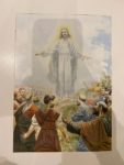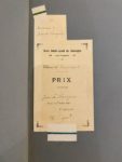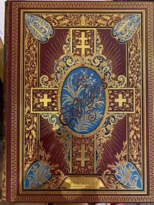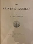 [CARTONNAGE - SAVIGNAC]. Les Saints Évangiles. Paraphrase du R. P. de Carrières. Clermont-Ferrand, Librairie Catholique & Louis Bellet, Éditeur, 1896. Grand in-4° bradel, percaline rouge brique, titre et large décor polychrome ornant le premier plat et le dos, tranches dorées (A. Souze Fils Sc.). Livre de prix reçu par Jean de Savignac en 1920 à Saint-Louis de Gonzague. Planches, certaines en couleurs. Légères rousseurs.