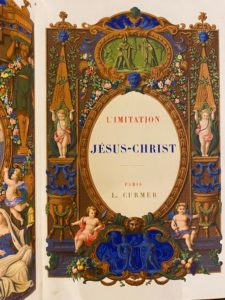 [IMITATION]. L'Imitation de Jésus-Christ. Paris, L. Curmer, 1856. In-4°, maroquin brun janséniste, dos à nerfs, tranches dorées, boite-étui (Belz-Niedrée) Ornementation chromolithographiée et enluminée sur chaque page. Nerfs frottés.