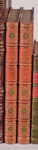 MONNIER (Henry). Scènes de la ville et de la campagne. Paris, Dumont, Éditeur, 1841. 2 volumes in-8°, demi-maroquin rouge à coins, filet doré bordant les plats, dos à nerfs mosaïqué, tête dorée (Malraison Rel.) ÉDITION ORIGINALE. Huit bois gravés par GÉRARD. Sans les 8 ff. de catalogue in fine du tome I. Timbre humide répété sur plusieurs pages : «Librairie & cabinet de lecture d'Aubin. A Aix et à Arles». Dos légèrement passés ; rousseurs dans le tome I. Vicaire, V, 1011.