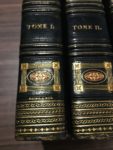 MONTAIGNE (Michel de). Essais. A Paris, Chez Lefèvre, Libraire, 1826. 4 volumes (sur 5) in-8°, demi-maroquin bleu sombre à coins, roulette dentelée à froid et filet doré bordant les plats, dos à nerfs mosaïqué, non rogné (Duplanil fils) Deux portraits de l'auteur gravés, l'un par DUPONT, l'autre par FICQUET. Tome III en déficit ; dos légèrement passés ; quelques rousseurs.