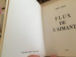 CHAR (René). Flux de l'aimant. S. l., Gaston Puel, n. d. [1965]. In-12 carré, br. Deuxième …