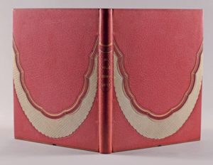 JAMMES (Francis). Ma Fille Bernadette. Lyon, Cercle Lyonnais du Livre, 1931. In-4°, maroquin rose, large décor personnalisé en maroquin blanc avec filets dorés et à froid ornant les plats, dos lisse orné du même, tranches dorées sur témoin, doublure et garde de soie brodée, couverture rose conservée, chemise en demi-maroquin rose à rabats, étui (Creuzevault). Bois en couleurs gravés par Jacques BELTRAND, d'après Maurice DENIS Tiré à 175 exemplaires, celui-ci n° 116. Dos de la chemise passé ; légères rousseurs sur les doublures et gardes.