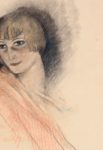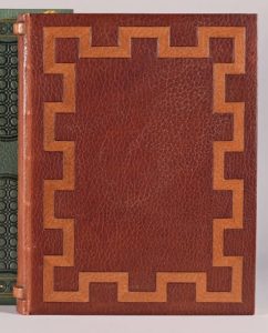 LOUŸS (Pierre). Les Chansons de Bilitis. S. l. [Paris], Pour l'Artiste et ses Amis, n. d. [1925]. Grand in-4°, maroquin brun, listel crénélé mosaïqué de maroquin brun clair encadrant les plats, filets dorés et à froid et listel de maroquin mosaïqué vert encadrant les plats, dos à deux nerfs orné titre mosaïque grec, contreplats orné aux angles de svastika, gardes de moire ocre, tête dorée, couverture conservée, étui (Creuzevault). Douze eaux-fortes originales en couleurs par Édouard CHIMOT. Tiré à 576 exemplaires, celui-ci, nominatif, SUR JAPON, UN DES 40 HORS-COMMERCE, réservé pour Monsieur Édouard Champion CONTENANT UN GRAND DESSIN ORIGINAL SIGNÉ (portrait de femme n›ayant pas servi à l›illustration), TROIS SUITES SUPPLÉMENTAIRES DES ILLUSTRATIONS, et une planche refusée. Dos passé.