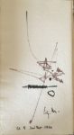 MATHIEU (Georges). Sept jours de Mathieu. S. l., Les Arts Terrestres, n. d. [1960]. In-8° en feuilles, sous couverture illustrée, chemise et étui de l'éditeur ÉDITION ORIGINALE. Photogravures en bistre. Tiré à 250 exemplaires et quelques-uns destinés aux amis de l'auteur, celui-ci (n° 15), un des 110 sur chiffon «Isle de France». DESSIN ORIGINAL en page de garde et LONG ENVOI DE L'AUTEUR «pour Jean François Revel [...]». Dos de la chemise passé ; légères décharges.