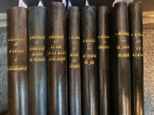 MAURIAC (François). Ensemble de 8 volumes in-12 et in-8°, demi-maroquin noir, dos à nerfs, …