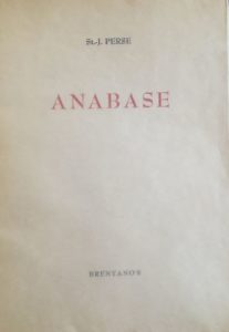 SAINT-JOHN PERSE. Anabase. S. l. [New York], Brentano's, n. d. [1945]. In-8° broché. Tiré à …
