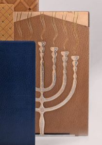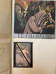 THARAUD (Jérôme & Jean). L'An prochain à Jérusalem. A Paris, Aux Éditions Lapina & fils, 1929. 2 volumes in-4° et un volume in-4° étroit (pour la «gamme d'essai»), maroquin beige, large décor mosaïqué, doré et argenté ornant le premier plat, tranches dorées sur témoin, couverture illustrée conservée, étui, et demi-maroquin (pour les vol. de suites et de «gamme d'essai») [Creuzevault]. Édition en partie originale et première illustrée. Bois en couleurs ou enluminés à l'argent gravés par Georges BELTRAND, d'après André SURÉDA. Tiré à 435 exemplaires, celui-ci (n° 16), signé des auteurs et de l'artiste, UN DES QUINZE SUR JAPON ANCIEN RÉIMPOSÉ, contenant LES DEUX DESSINS ORIGINAUX de l'illustration de la page 3, UNE GAMME COMPLÈTE D'ESSAIS et TROIS SUITES SUPPLÉMENTAIRES DES ILLUSTRATIONS. JOINT : le prospectus illustré relié in fine. Tout petit accident restauré sur le premier plat.
