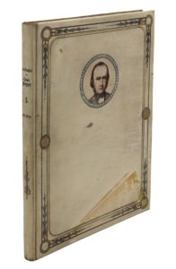 Le Matin, 1914. Plaquette in-8, reliée avec 4 textes autographes montés sur ff. in-4 dans un album in-4, vélin décoré d'encadrements de filets verts et or avec feuillages aux angles, portrait de Claude Bernard en médaillon sur le premier plat (Reliure peinte signée A. Toubine, Paris).Ce précieux album contient les manuscrits autographes des discours prononcés le 30 déc. 1913 dans l'amphithéâtre du Collège de France en présence du président de la République R. Poincaré et de nombreuses personnalités.