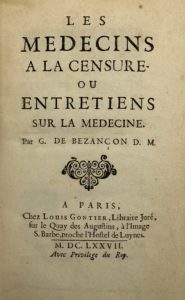 BEZANÇON (Germain de) — Les Médecins à la censure, ou Entretiens sur la médecine