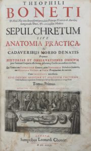 Édition originale de ce monument du médecin genevois Th. Bonet, le premier livre d’anatomie pathologique qui inspira à Morgagni son De sedibus et causis morborum.