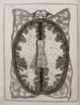 Beau frontispice allégorique non signé avec des putti chirurgiens et une devise latine disant : Il dissèque les morts pour soigner les vivants. Les planches anatomiques, dessinée, et gravées d'après nature, montrent les parties du cerveau, les artères du cerveau, les yeux, la bouche, le palais, le gosier, les oreilles externes et internes, etc.