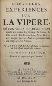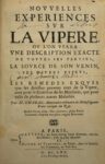 CHARAS (Moyse) — Nouvelles expériences sur la vipère où l’on verra une description exacte de toutes ses parties, la source de son venin, ses divers effets...