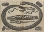 Une des variantes de la première édition que l’on trouve aux dates de 1669-70-71 et 72. Celle-ci est datée 1670, à pagination continue sans le titre répété pour la deuxième partie, conforme à l’exemplaire Krivatsy 2367. Elle est ornée d’un beau frontispice de vipères entrelacées et de 3 doubles planches d’anatomie de la vipère.