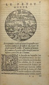 DONI (Antoine-François) — Les Mondes célestes, terrestres et infernaux. Le monde petit, grand, imaginé, meslé, risible, des sages et fols, et le Trèsgrand. L'enfer des escoliers, des mal mariez, des putains & ruffians, des soldats & capitaines poltrons, des piètres docteurs, des usuriers, des poëtes & compositeurs ignorans.