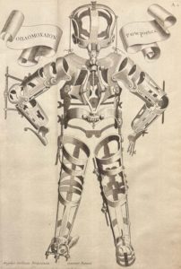 Les œuvres chirurgicale de Girolamo Fabrizi d'Aguapendente (1533-1619) avaient d'abord paru à Padoue en 1617. La première partie décrit les maladies, les plaies, ulcères, fractures, luxations, etc. La seconde partie décrit les opérations chirurgicales. Les 9 planches représentent des exosquelettes, des instruments chirurgicaux (la plupart s'apparentant à des instruments de torture).