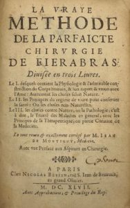 FIERABRAS (Hervé) — La Vraye methode de la parfaite chirurgie... Le tout reveu et exactement corrigé par M. Jean de Montigny Avec une Preface aux Aspirans en chirurgie