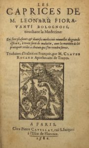 FIORAVANTI (Léonardo) — Les Caprices touchant la Médecine... Traduites de l’italien par M. Claude Rocard apothécaire de Troyes.
