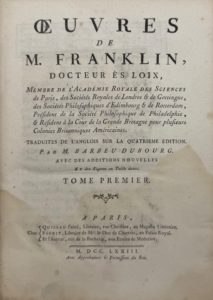 FRANKLIN (Benjamin) — Œuvres traduites de l’Anglois sur la quatrième édition par M. Barbeu Dubourg, avec des additions nouvelles et des figures en taille-douce.