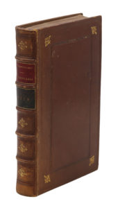 Lyon, Seb. Honorat, 1558. In-8, maroquin havane, double encadrement de filets à froid, fleurons dorés aux angles, dos à nerfs, caissons à froid avec fleurons dorés, pièces rouges et noires (Reliure du XIXe siècle).8 ff., 559 pp., 23 ff. n. ch.
