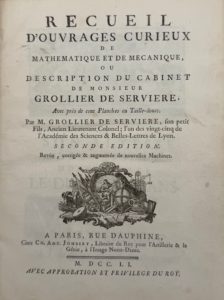 GROLLIER DE SERVIÈRE (Nicolas) — Recueil d'ouvrages curieux de mathématique et de mécanique, ou Description du Cabinet de Monsieur Grollier de Servière... par M. Grollier de Servière, son petit-fils. Seconde édition revue, corrigée et augmentée de nouvelles Machines.