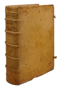 Francfort, héritiers d'Andreas Wechel, 1595. Fort volume in-folio, vélin ivoire (Reliure de l'époque).6 ff. n. ch., 20 ff (paginés par pages ou colonnes 1 à 50), 232 (pages ou colonnes, certaines mal chiffrées), 158 (pages ou colonnes), 1f. blanc, 144 pp., 1 f errata, 383 (pages ou colonnes), 1f. errata, 1 f. blanc, 253 (pages ou colonnes), 1f. blanc, 393 (pages ou colonnes), 1f. blanc, 45 (pages ou colonnes) 24 ff. n. ch. (errata et index).
