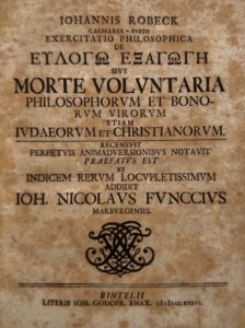 ROBECK (Johann) — Exercitatio philosophica de... sive morte voluntaria philosophorum et bonorum virorum etiam judaeorum et christianorum...