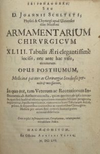 C'est le seul ouvrage du célèbre chirurgien Jean Scultet, en allemand Johann Schultes (Ulm 1595 - Stuttgart 1645). La première édition de l'Arsenal chirurgical a paru en 1653. Ouvrage posthume, il a été publié par les soins de son neveu et fut souvent réimprimé et traduit.
