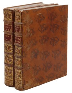 Vratislavice (Bratislava), J.Ernst Meyer, 1774, 1777, 1760, 1762. 4 tomes en 2 vol. in- 4, veau fauve marbré, dos ornés, tranches marbrées (Reliure de l’époque)6 ff., 374 pp. - XVI pp., 407 pp., 1 f. - 8 ff., 272 pp. - 9 ff., 248 pp.,12 ff. index.