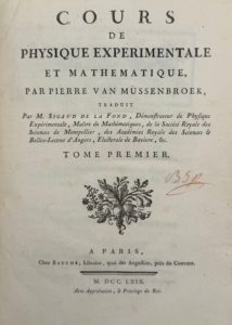 VAN MUSSENBROEK (Pierre) — Cours de physique expérimentale et mathématique, traduit par M. SIGAUD DE LA FOND