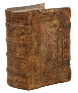 Leipzig, Beyer, 1595-1596. 3 tomes en un fort volume petit in-4, peau de truie estampée à froid sur ais de bois, dos à nerfs orné, restes de fermoirs en laiton (Reliure de l’époque).10 ff. n. ch., 508 pp., 25 ff. de table - 1 f. bl., 16 ff. n. ch., 121 ff. ch., 7 ff. n. ch., 7 ff. n. ch., 134 ff. ch., 7 ff. n. ch.