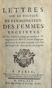 [BELLET (Isaac)] — Lettres sur le pouvoir de l’imagination des femmes enceintes où l'on combat le préjugé qui attribue à l'Imagination des Mères le pouvoir d'imprimer sur le corps des enfans renfermés dans leur sein la figure des objets qui les ont frappées.‎