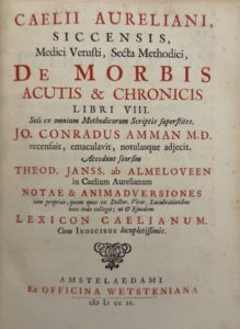 CAELIUS AURELIANUS — De morbis acutis & chronicis libri VIII.