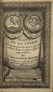 GLASER (Chr.) Traité de la Chymie. Paris, d’Houry, 1673 ; in-16, vélin de l’époque. Frontispice et 2 planches dépl. (sur 3?) – GLASER (Chr.) Traité de la Chymie. Paris, d’Houry, [vers 1670] ; in-16, veau de l’époque. Autre exemplaire complet des 3 planches mais sans page de titre. – MUNNICKS (J.) Cheirurgia ad praxin hodiernam adornata... Amsterdam, ap. L. Malcolmesium, 1715 ; in-8, veau usagé de l’époque. – BOERHAAVE (H.) Elementa chemiae... tomus primus. Paris, Cavelier, 1752 ; in-4, veau de l’époque. Tome I seul. – BOERHAAVE (H.) Elementa chemiae... tomus secundus. Leyde, 1732 ; in-4, cartonnage ancien. Tome II seul (qui ne complète pas l’exemplaire précédent). – STAHL. Opusculum Chymico-Physico-Medicum... Utrecht, 1715 ; in-4, demi-veau postérieur. Page de titre rognée trop court atteignant l’adresse et la date. – LEMERY (N.) Cours de chymie... seconde édition. Paris, l’auteur, 1779 ; in-16, veau de l’époque. – LEMERY. Cours de chymie contenant la manière de faire les opérations... Paris, Michallet, 1688 ; in-8, basane usagée, exemplaire défraîchi, planches in-texte. – LAVOISIER. Traité élémentaire de chimie... Avignon, Joly, 1804 ; 3 vol. in-8, basane usagée de l’époque. Le 3e tome est intitulé Nomenclature chimique ou synonymie ancienne et moderne... –