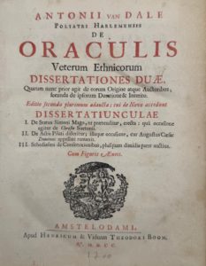 DALE (Anton Van) — De Oraculis veterum ethnicorum dissertationes duae, quarum nunv prior agit de eorum origine atque auctoribus, secunda de ipsorum duratione & interitu. Editio secunda lurimum adaucta ; cui de novo accedunt.
