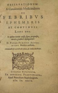 FOREEST (P. van). Observationum et curationum medicina – lium de febribus ephemeris et continuis. Leyde Plantin, 1693 ; Suivi de : Observationum et curationum medicinalium libri tres. Id, ibid, 1591 – Observationum... de febribus publice grassantibus. Id 1591, 3 ouvrages en 1 vol pet. in-8, vélin de l'ép. – HUCHER (J.) De febrium differentiis, causis, signisque et curatione. Lyon, A. de Harsy, 1601, in-8, vélin de l'ep. – SPON. Observations sur les fièvres et les fébrifuges. Lyon Amaury, 1687; in-12, bas-usagée de l'ép. – ALARY (B.) La guérison assurée des fièvres tierces, doubles tierces en deux jours quartes et doubles quartes en quatre par le remède provençal en tablettes. Paris, l'auteur, 1685 ; in-12, veau usagé . – SCHYRON (Jean). Institutionis medicinae faciendae libri tres quibus accessit tractatus peculiaris de curatione febrium putridarum. Montpellier, Gilet, 1608 ; in-16 vélin de l'ep. – BEZANSON. Nouveau traité des fièvres... Paris, D'Houry, 1690 ; in-12, veau de l'ep. – 1 tableau dépl. – PIQUER (Andrès) Traité des fièvres, traduit de l'espagnol en françois. Amsterdam, Montpellier, Bascou, 1776 ; in-8, basane marbr. de l'ép. (2 exemplaires, le 2e en veau marbr., coiffe abimée) – MINOT(Jacques). De la nature et des causes de la fièvre... Paris, D'Houry, 1701 ; in-12, veau de l'ép. défraîchi.