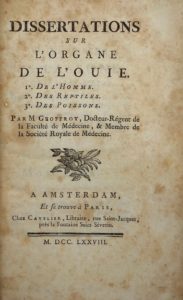 GEOFFROY (Ét.-Louis) — Dissertation sur l’organe de l’ouïe 1° De l’Homme 2° Des Reptiles 3° Des Poissons.