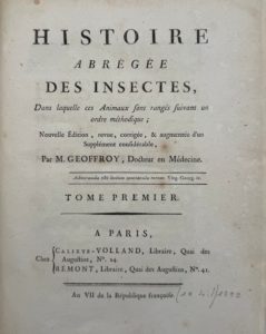 GEOFFROY (Ét.-Louis) — Histoire abrégée des insectes... nouvelle édition revue, corrigée et augmentée d’un supplément considérable.