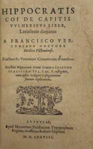 1) De capitis vulneribus liber latinitate donatus a Francisco Vertuniano. Paris, Mamert Patisson, 1578, in-12 veau du XVIIIe.